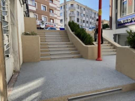 Bolu Yeni Kent Meydanı düzenleme çalışmalarında, merdiven uygulaması için AQUAZEMİN tercih edilmiştir. Uygulamada Gri, Bej renkleri kullandıldı. Çok uygunlu kent’e farklılık katan uygulamamız herkesin beğenisini aldı.